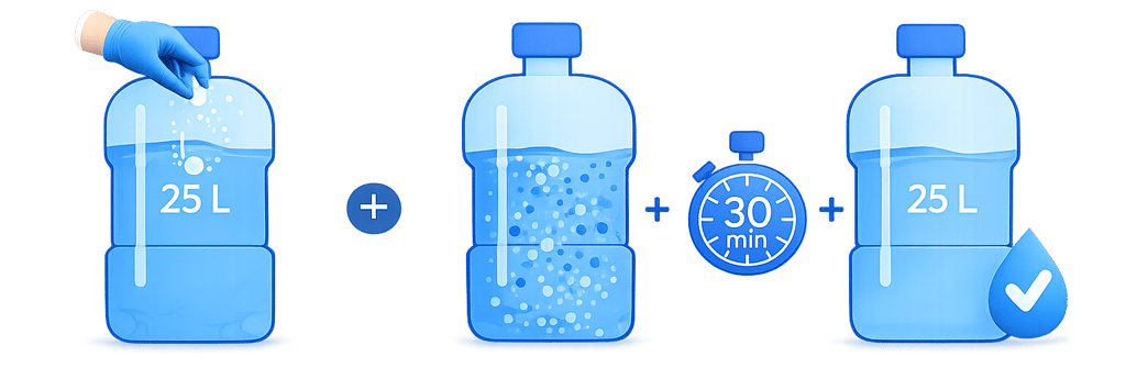 A single tablet can treat 25 liters of water, providing a simple and scalable approach to potable water treatment in infrastructure-limited environments.